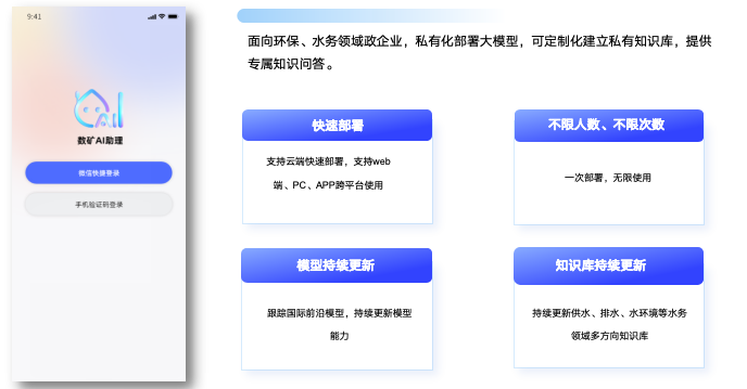 AI助理 是一款基于AI大模型、水務(wù)行業(yè)知識(shí)庫的對話小程序,具備回答水務(wù)行業(yè)專業(yè)知識(shí)的能力,本產(chǎn)品主要為水務(wù)領(lǐng)域人員提供專業(yè)知識(shí)咨詢與技術(shù)支持、數(shù)據(jù)分析、行業(yè)分析、行業(yè)知識(shí)查詢等服務(wù)。旨在解決客戶在供水、排水水務(wù)領(lǐng)域中遇到的工藝、運(yùn)營管理、水處理原理、水質(zhì)檢測、管網(wǎng)規(guī)劃、設(shè)備維護(hù)等問題。
