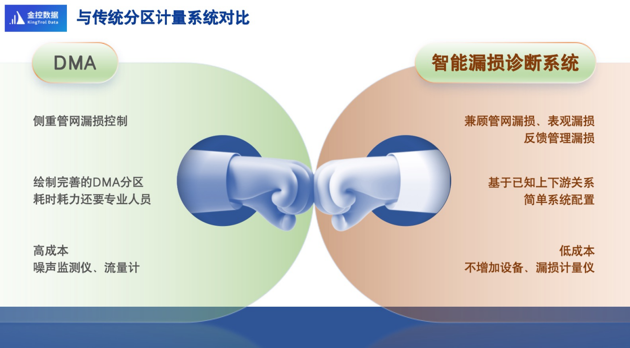 - 依托已有信息化平臺(tái)和大數(shù)據(jù),不增加設(shè)備、不依賴DMA分區(qū)漏損分析,低成本。