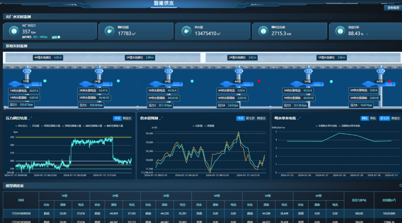 北京金控數(shù)據(jù)技術(shù)股份有限公司的智能泵組控制系統(tǒng)是一款突破性的技術(shù)產(chǎn)品,它專為解決給水廠在傳統(tǒng)控制方式中遇到的依賴人工經(jīng)驗及受外部因素影響導(dǎo)致的壓力波動問題而設(shè)計。智能泵組控制系統(tǒng)通過精準計算和智能算法,動態(tài)自動完成泵組的調(diào)度,顯著減少調(diào)度人員的工作強度。系統(tǒng)能夠輸出供水量預(yù)測值,實現(xiàn)取水與供水調(diào)度的高效協(xié)同,確保供水過程的連續(xù)性、穩(wěn)定性,同時降低能耗,提高系統(tǒng)的可靠性和效率 。
